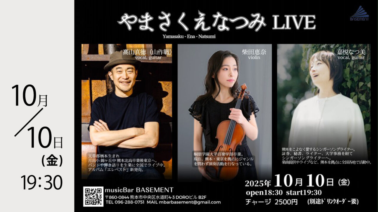 10月10日(金)にmusicBar BASEMENT にて やまさくえなつみLIVE が開催される予定です!