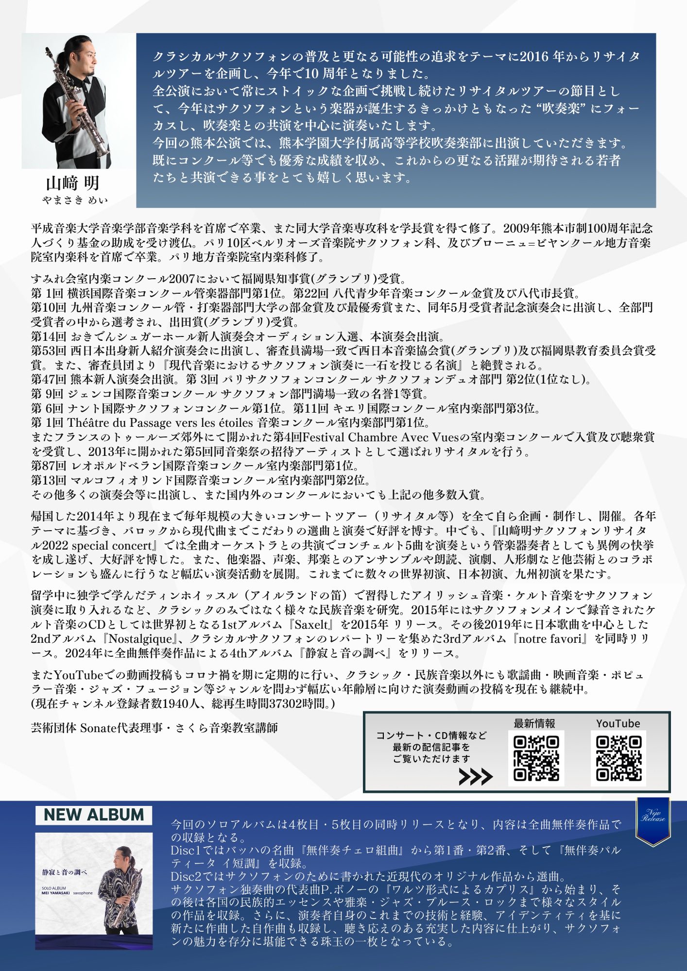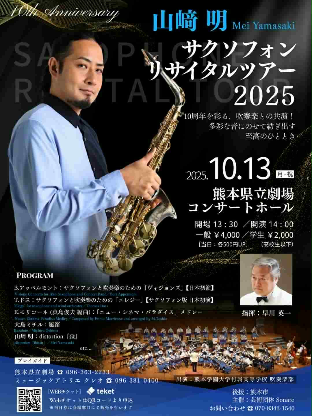 10月13日(月祝)に熊本県立劇場コンサートホール にて山﨑明 サクソフォンリサイタルツアー2025 が開催される予定です!