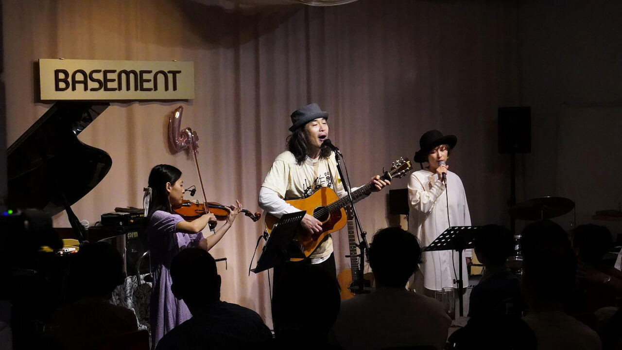 ヴォーカル/ギター 髙山真徳 さん × ヴァイオリン 柴田恵奈 さん × ヴォーカル/ギター 嘉悦なつ美 さんの素晴らしいステージでした (^^♪
