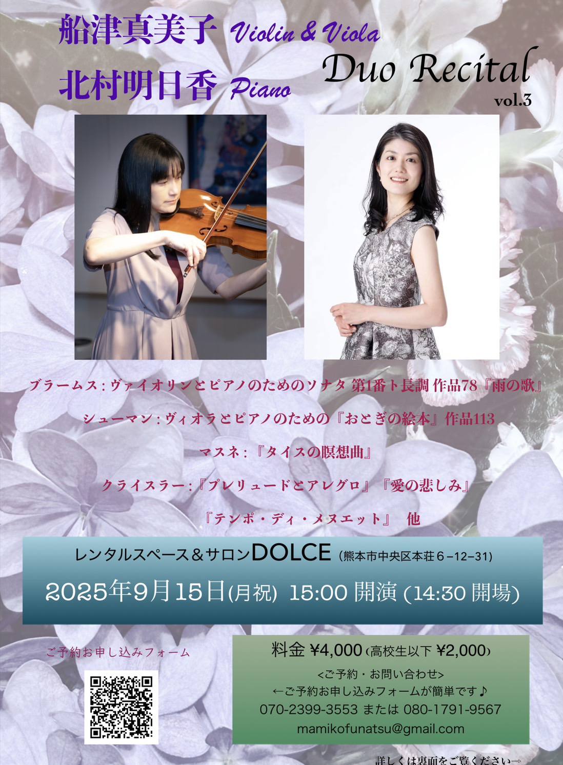 2025年9月15日(月・祝)、船津真美子 (Violin & Viola) 北村明日香 (Piano) Duo Recitalに行ってきました!