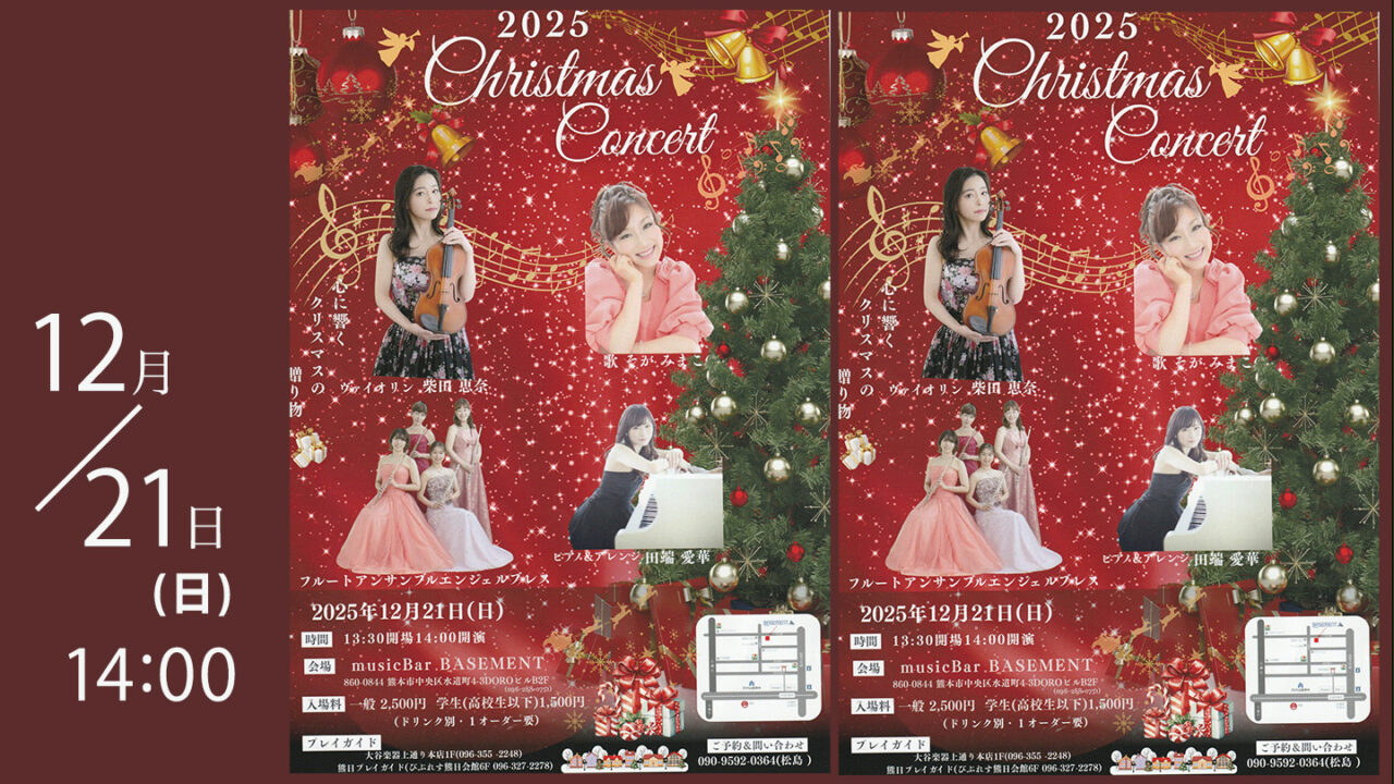 12月21日(日)にmusicBar BASEMENT にて 2025 Christmas Concert が開催される予定です!