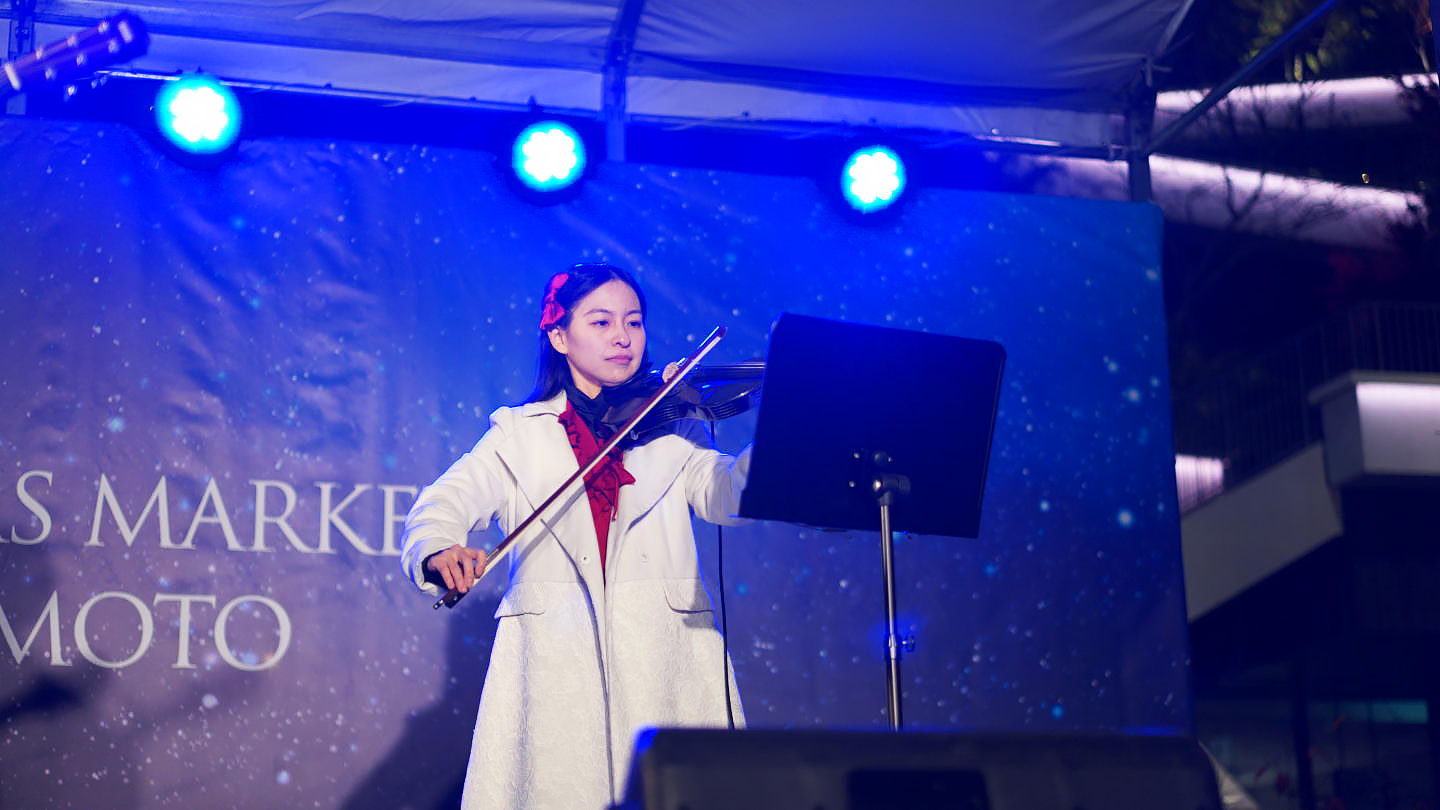 2025年12月12日(金)、クリスマスマーケットで、嘉悦なつ美さん・島田克也さん・柴田恵奈さんの歌と演奏を聴いてきました!