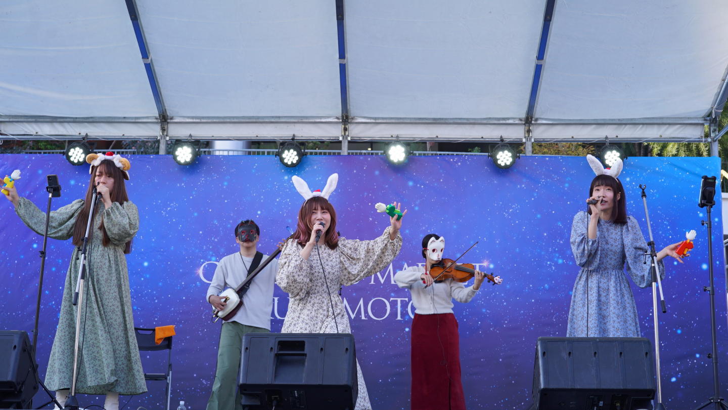 8回目となるクリスマスマーケットに今年も出演できて嬉しいです。みなさんからの笑顔や手拍子をいただいて、とっても幸せな気持ちで演奏しました。熊本復興を願って結成されたもふもふも来年10周年。これからも皆さんを笑顔にできるように、私たち自身楽しみながら頑張っていきます!」