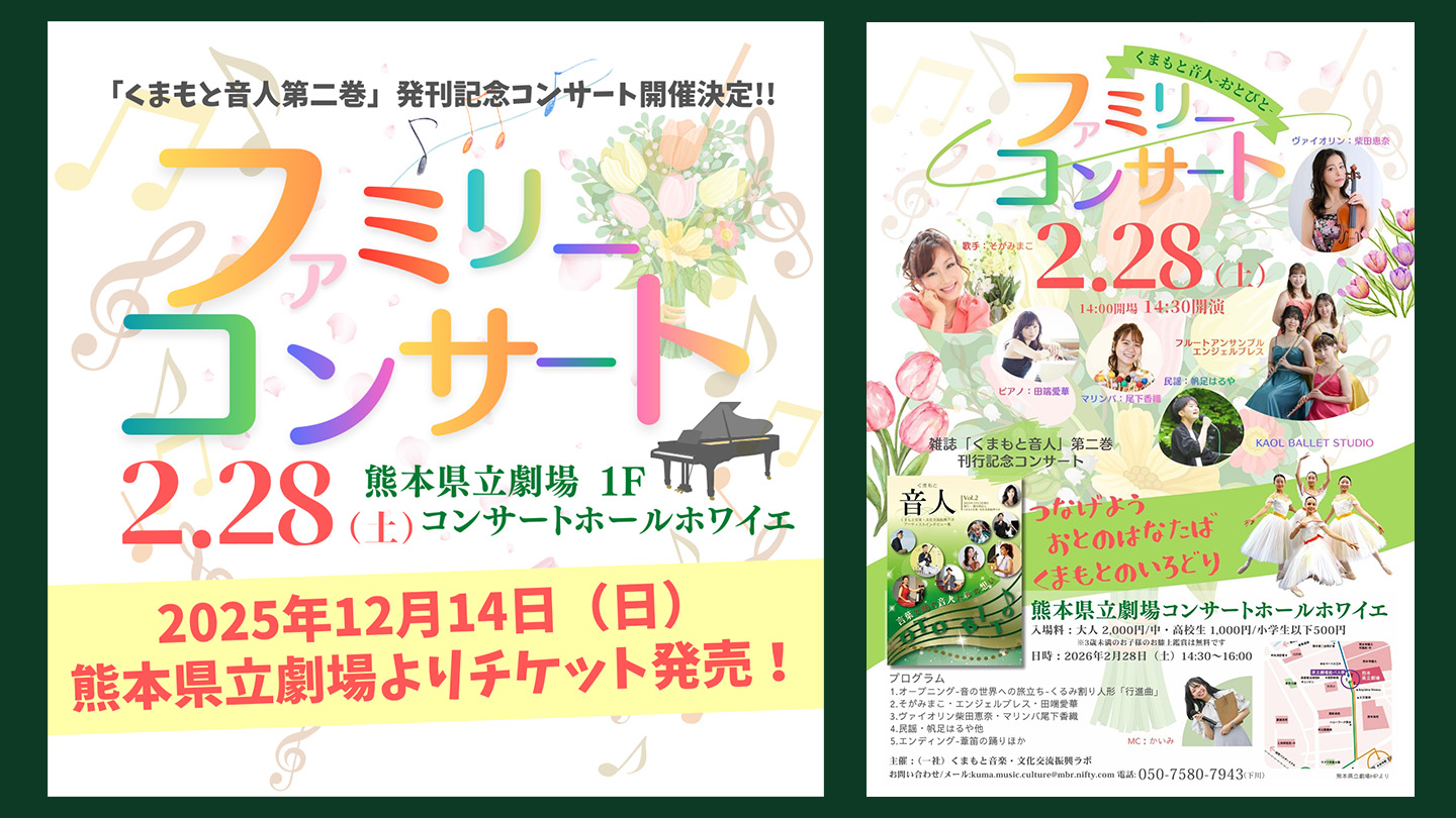 【告知】くまもと音人(おとびと)ファミリーコンサート(2026.2.28. 14:30~)《熊本県立劇場にて 》