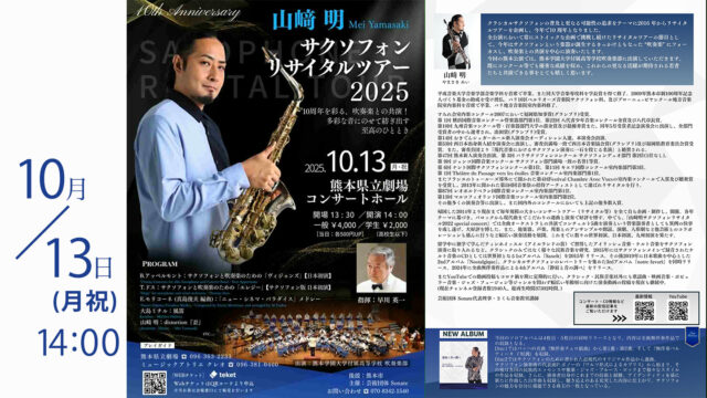 音楽 【告知】山﨑明 サクソフォンリサイタルツアー2025 ~記念すべき10周年!豪華初演ラインアップが実現!~(2025.10.13)《熊本県立劇場》 kumamoto music and culture 【くま音文ラボ】熊本の音楽・熊本の文化を楽しもう! 熊本の音楽・文化紹介(くま音文ラボ)
